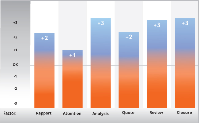 DNLA Sales Potential provides the “fine tuning” of the soft skills needed to be a successful salesperson – for any clientele; in any branch, position or rank. 6 factors typical for each sales process: