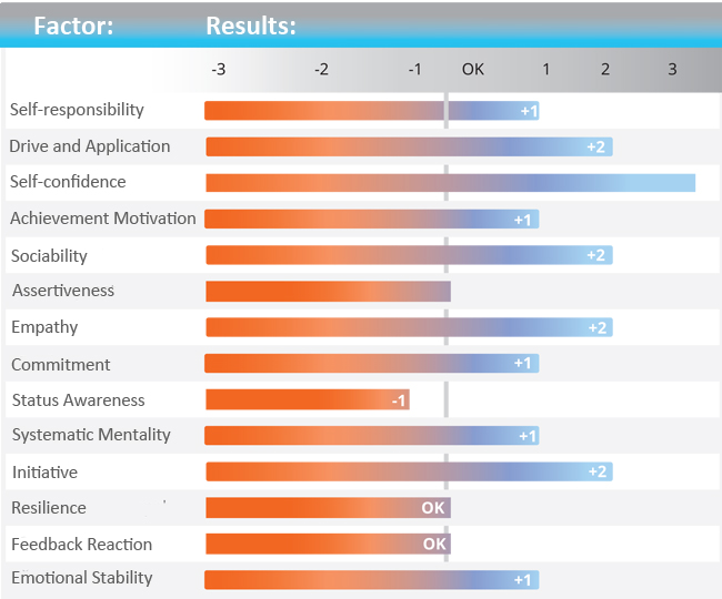 Each employee not only receives a comprehensive explanation of the results, but also the corresponding guidelines and indicators for further development. It is proved that individuals with high social skills are more likely to be more successful as those with undeveloped social skills, which directly influences the effectiveness of professional activities, management or sales.